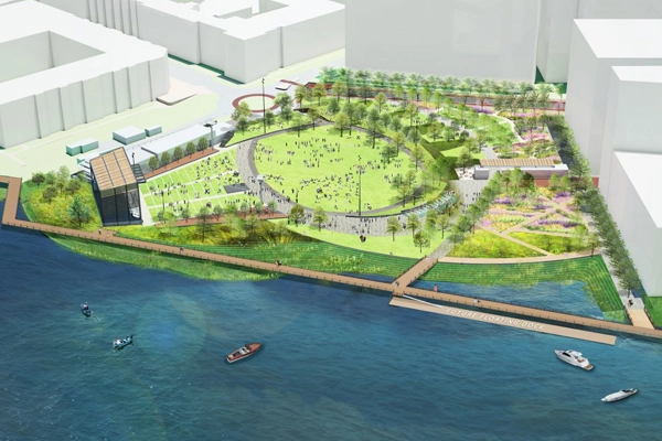 Whether you are enjoying the views at an iconic site like Brooklyn Bridge Park in New York City or walking the boardwalk along the Cape Fear River in Wilmington, North Carolina, our waterfronts are treasured social spaces in our cities. At this year’s ASLA Conference on Landscape Architecture in Minneapolis, the significant role that waterfronts play nationwide was front and center. From panel discussions that considered strategies for protecting cultural landscapes from sea level rise like the Tidal Basin in Washington, D.C., to the numerous award-winning waterfront projects including Grand Junction Park and Plaza in Westfield, Indiana, the need for embedding ecological and social resilience into urban waterfronts is clear.