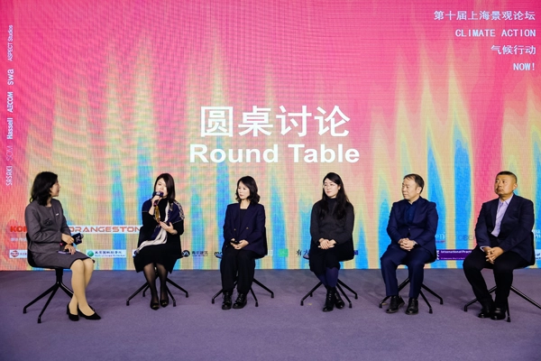 Following the presentations, a roundtable discussion was hosted by Dou Zhang, FASLA, Director at Sasaki and co-founder of the Shanghai Landscape Forum. Guests from USGBC, TREND, Shanghai Jiaotong University, Tongji University, and Shanghai Longlv Building Technology Company, Ltd, discussed issues related to low carbon buildings and carbon neutrality, green building certification, green co-governance, and flood risk to Shanghai.
