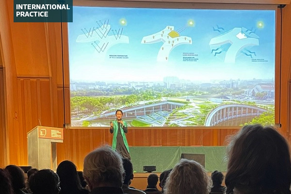 Having attended the biennial, I find it compelling to highlight the unmistakably international character of the event. One of the finalists was by the California-based landscape firm Surfacedesign, Inc., a remarkable project with earthforms designed to be seen from above as much as from on the ground, when moving at different speeds entering or exiting the country. The project celebrates the volcanic heritage of the site. [This project was also a 2021 ASLA Professional General Design Honor Award winner.]