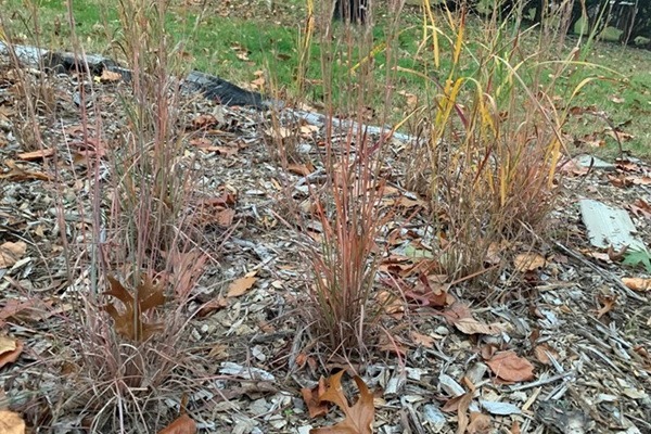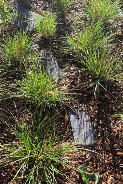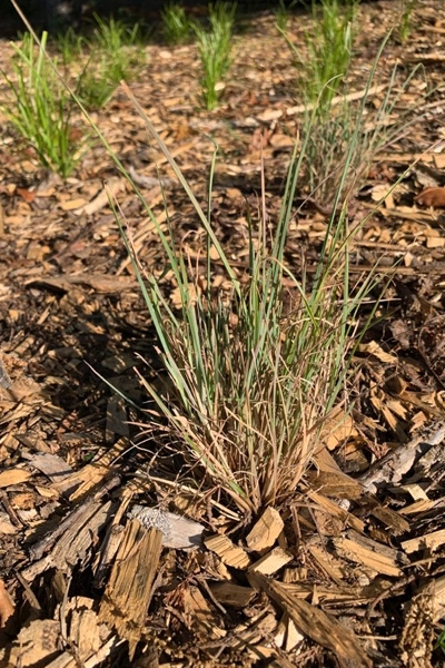 Little Bluestem showed the greatest change in September, shaking off their slow emergence and sending up tall spikes of blue and pink. The Carex provided a more subtle display as they anchored the ground plane. Bicknell Sedge transitioned to a deeper green with straw highlights. Cherokee Sedge held its cheerful green tones.