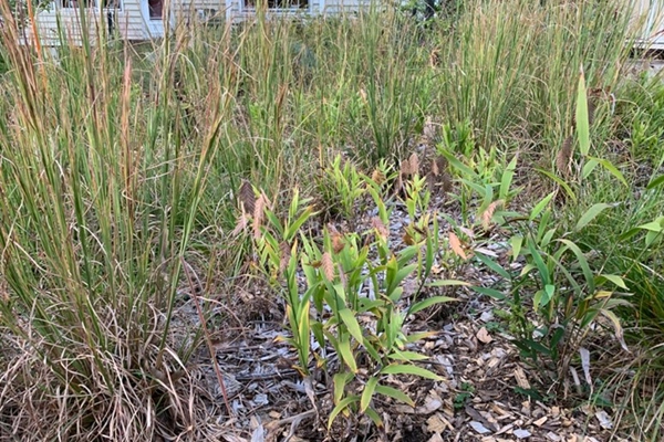 The plants in the lower meadow were establishing with less exuberant progress. In some cases I became worried that the heat was too much for them. Little Bluestem in particular showed some modest growth in some plants, while others appeared to be succumbing to the stress. I watered these newer plugs twice a week from the rain barrel, hoping the roots were establishing out of sight.