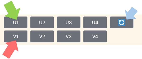 Re-generate Button: If you're not satisfied with any of the four images, you can use the blue re-generate button on the far right (see blue arrow in Figure 2). Clicking it will make Midjourney create a new set of images.