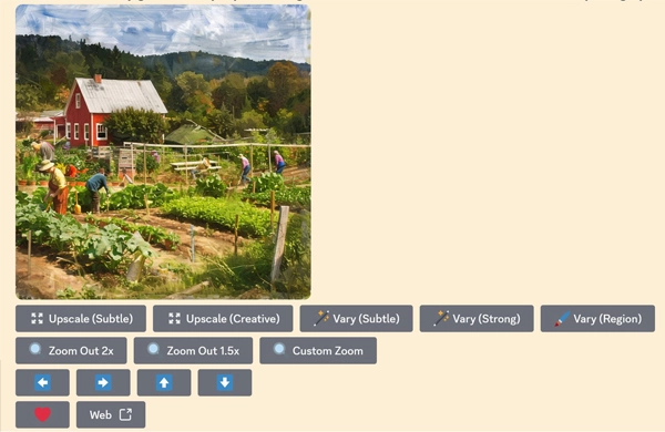 Vary (Subtle): This option allows you to generate a grid of four new images with subtle changes. See below.