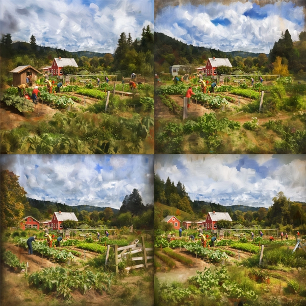 As a result, I got a grid of four images that only has the red barn modified while the rest of the image retained unchanged (see Figure 11).