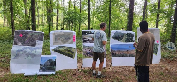 One example is Catawaba Trail Farm, just north of the city of Durham, North Carolina. It’s owned and run by Urban Community AgriNomics, which is a nonprofit organization that emerged 20 years ago to teach people about life skills using the landscape. It's all run by black women, senior black women, who asked permission from the Triangle Land Conservancy a decade ago, to farm and cultivate on what was once known as the Snow Hill Plantation. It was a transfer of land ownership from the Triangle Land Conservancy to this nonprofit to not just steward, but to own the land. The people leading this nonprofit are descendants of the enslaved people that used to work that plantation. The work started when they needed help laying out garden beds and fencing. Then it grew into telling the story about the significance of the place, and supporting them while they acquired the land. So the work has evolved with them in parallel as they’ve grown. Currently we're working on an unmarked burial ground that was discovered on this site. We collaborated with a researcher at Duke University, Brian McAdoo, to use ground penetrating radar to identify where we think the graves of former enslaved peoples are, and we're working on a protection and interpretation strategy. This work has gone on for seven, eight years, you know, starting as undefined individual pieces, and then eventually started to ratchet into work on the complete opposite end of the spectrum.