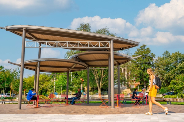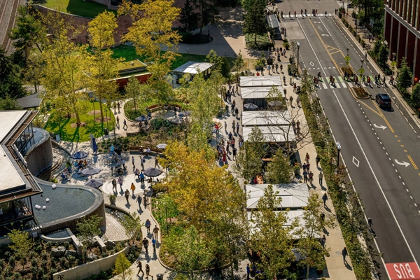 Eastern Market Metro Park, situated at Capitol Hill’s busiest intersection and metro station, underwent a complex transformation from fragmented spaces governed by federal and local authorities to a unified destination park. Walk and learn about the robust engagement and focus on sustainability and public art that shaped today’s beloved park.