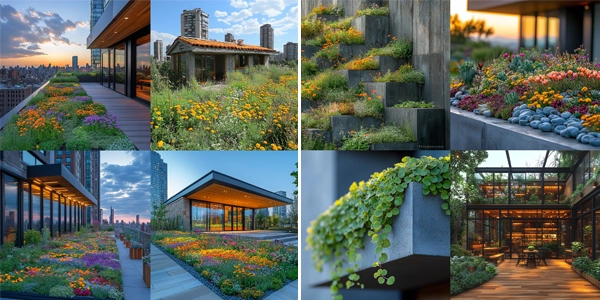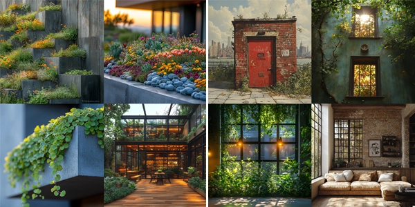 Adding a double colon to a prompt indicates that each part of the prompt is individual. For the prompt urban green roof, all words are considered together, and the Midjourney Bot produces images of a green roof with a city in the background. If the prompt is separated into two parts, urban:: green roof, both concepts are considered independently and then combined, resulting in a design where urban infrastructure elements such as concrete blocks are mixed with rooftop garden planting, creating a unique blend of both elements (Figure 1).