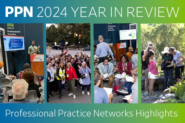 ASLA offers live and on-demand Online Learning webinars, many of which are hosted by the PPNs on a topic of special relevance to their members. There were 19 PPN webinars and virtual events in 2024—here are the ones with recordings or summaries available: