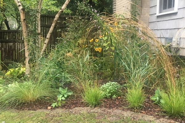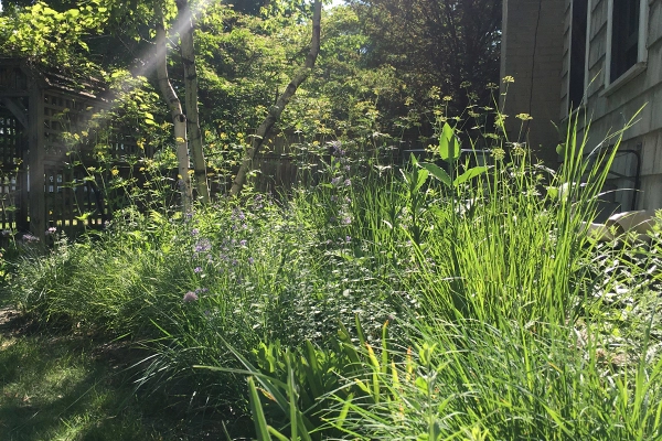 A few new arrivals had appeared as well. A Rudbeckia hirta, presumably from another landscape just 10 feet away, had self-sown in the space, along with three Coreopsis palmata (also likely from the nearby landscape), and two Allium schoenoprasum, which had come from an existing clump just to the east of the landscape outside the study area.