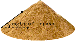 Other terms for slope rounding are contour grading, landform grading, foreslope rounding, landforming, or “laying back slopes.” Slope rounding is used for aesthetic purposes and safety purposes alike, especially related to stormwater management and erosion control. Rounding the top and toe of a slope so that it begins convex and ends concave (see Figure 1 below) ensures that stormwater slows as it reaches the base of the slope. Stormwater is an erosive force, and grading and stormwater management can be focused on slowing it down. Slope rounding shifts the upper and lower sections of the slope to their natural angle of repose, the steepest slope angle on which material can be piled without the slope eroding (see Figure 2). If a slope is steeper than its natural angle of repose, it will eventually weather to reach that stable angle with wind and water erosion. By rounding the slope before extensive erosion can occur, we reduce the risk of visual degradation from exposed dirt and slope failure, a safety hazard.