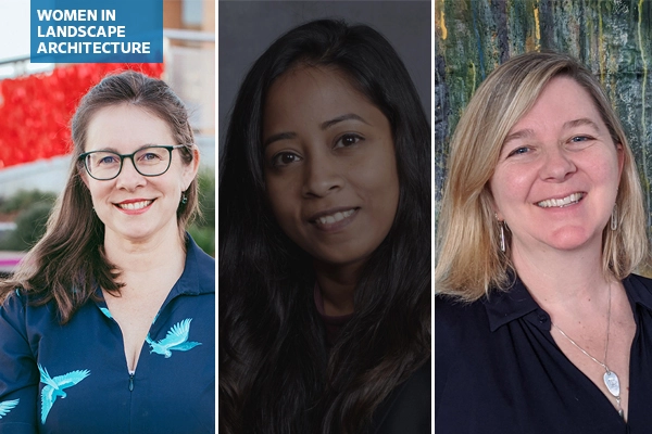 Left to right: Lauren Colunga, ASLA / image: © 2024 Io LandArch, LLC; image: courtesy of Nusrat Jahan Nipu; Tanya Olson, ASLA, PLA / image: Matt Fridell
