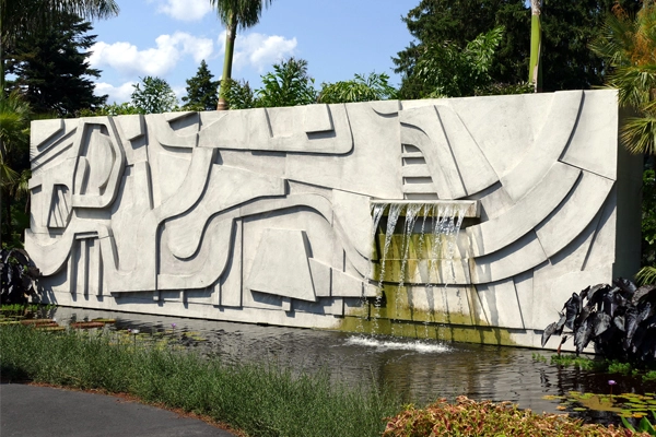 I started the presentation by showing the work of Richmond’s own Charles F. Gillette (1886-1969), with samples of the parterres, classical fountains, and gardens that he designed. Then I presented drawings, paintings, mosaics, and sculptures designed by Roberto Burle Marx. Next, I presented samples of his work highlighting how his planting plans were works of art by themselves. I also presented some of Burle Marx’s work in the United States, like the Cascade Garden at Longwood Gardens (1989-1993) in Pennsylvania, Miami’s Biscayne Boulevard (1988-2004), and a 2019 exhibition in the New York Botanical Garden.