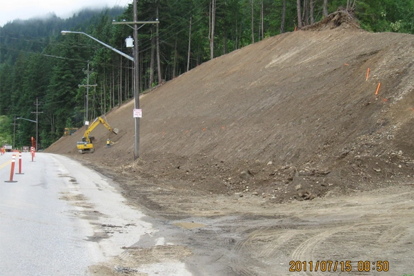 Because we often see steep slopes in nature that flourish without human intervention, there is a common misconception that disturbed roadside slopes can also revegetate “naturally.” Over time, native seed banks will accumulate, and plants will recolonize through natural succession. Soil structure will improve as the movement of fine root hairs through the soil and their eventual decomposition leave voids for water and oxygen to enter the soil. Beneficial fungi and microorganisms, all of which aid in revegetation, will accumulate in the soil. But this all takes time and won’t always happen before noxious weeds take over or natural hazards impact our transportation infrastructure. Topsoil salvage and stockpiling can help preserve some characteristics of native soil, but the soil structure cannot be replicated quickly or easily. For this reason, it is of utmost importance to minimize disturbance in the first place.