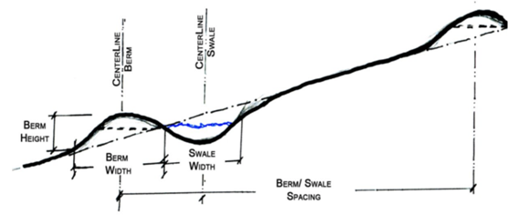 Slope warping is a landscape grading method that emulates how undisturbed slopes have natural variations in cross slope. The concept essentially involves incorporating berms and swales into the landscape to slow stormwater and improve the aesthetics and safety of our roadsides. Using slope warping in roadside grading can break up long expanses of smooth, steep slopes and improve revegetation success, especially in arid climates. While the concept is similar to slope rounding in that it involves undulating slopes to slow stormwater runoff (see Slope Rounding in Roadway Design Projects), slope warping is more complex because it varies more depending on a site’s unique climate and topography.
