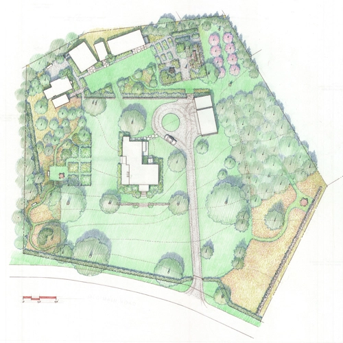 Just before Covid, I was approached by two prominent architects—a husband-and-wife team—to create a master plan for their historic country home. The property included a collection of outbuildings they were renovating, along with a few dilapidated structures that had already been removed. We used the footprints of the former barns to define new garden rooms and introduced a reclaimed granite-bordered game lawn to bring clarity and order to the varied angles of the outbuildings. I’ll admit, presenting the design was intimidating, knowing the clients' backgrounds and the caliber of world-class projects they had worked on. To my relief, they loved the concept, and we ended up building it almost exactly as originally envisioned.