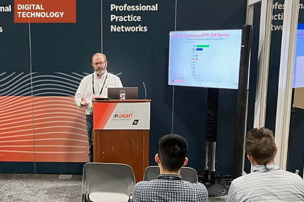 Digital Technology PPN leader Eric GIlbey, ASLA, reviewing the results of the PPN's survey on software at the ASLA 2024 Conference on Landscape Architecture