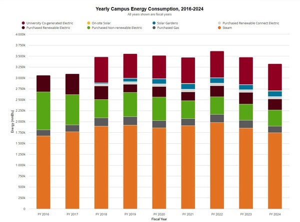Solar-on-campus is a key part of the UMN Twin Cities Climate Action Plan, released in May 2023. Since most of the University’s emissions come from heating and powering buildings, there’s a strong push to use renewable energy wherever possible. As of 2023, about 5% of the University’s total energy use comes from renewable sources, including both purchased and on-site generation. On-site solar is growing steadily as technology becomes more efficient.
