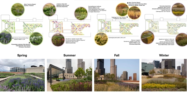One project used as an example was the Meadow at the Old Chicago Post Office, a 2023 ASLA Honor Award winner. The planting plan was color coded, with clear blocks to help with maintenance; it is obvious what belongs where.