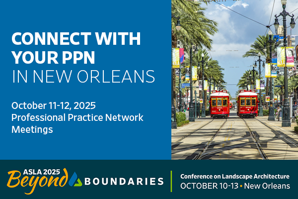 For more conference content from the PPNs, see these previous posts for education session highlights by PPN practice area: Campus Planning & Design through Historic Preservation and International Practice through Women in Landscape Architecture. If you're feeling nostalgic and would like to travel back in time to the ASLA Conference's previous trip to New Orleans, see the 2016 PPN events recap.
