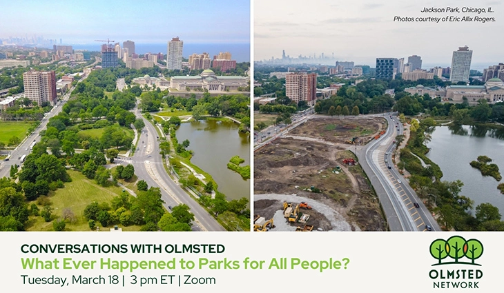 On March 18 at 3 pm ET, Conversations with Olmsted: What Ever Happened to Parks for All People will explore the issue of privatization through a national lens. The Olmsted Network will welcome perspectives from moderator Bonnie Jean Feldkamp of Louisville, Derrick Evans of Boston, Bronwyn Nichols Lodato of Chicago and Wyman Winston of Milwaukee. Register for this free conversation.