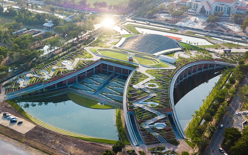 The 12-acre Chulalongkorn University Centenary Park in Bangkok, the first new park in the city in 30 years, is a model for how to design with nature. Tilted at 3 degrees, the park funnels storm water into a retention basin that can safely double in size amid heavy rains. How did you come up with this idea to incline the entire park?