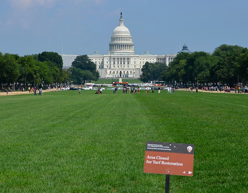 To reduce compaction, soil must have open air pores. The team found the best soil for defending against compaction is sandy loam. Investigations addressed whether or not there should be additives in the soil; these little crunchy things that spring back and keep the soil open. The NPS didn't want to go down that road, so they approved a very good sandy soil mix. The first phase they decided they had a little too much organic matter. They changed it up a little bit on the second phase. We achieved what L’Enfant and Frederick Olmsted, Jr. were after: the long green corridor.
