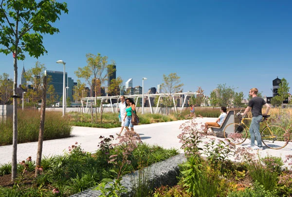 Gantry Plaza State Park demonstrated that we can celebrate history, heritage, culture, and, at the same time, express the future with contemporary design. That’s why that park is so special to us. It became the new paradigm for 21st century waterfront parks, the park everyone pointed to in New York and said, “Let’s make all the rest of our waterfronts like this.” I can take you around the shoreline now and you will see that Gantry Plaza State Park ideas have found their way in other places. And it really launched a whole new era in landscape architecture in New York.