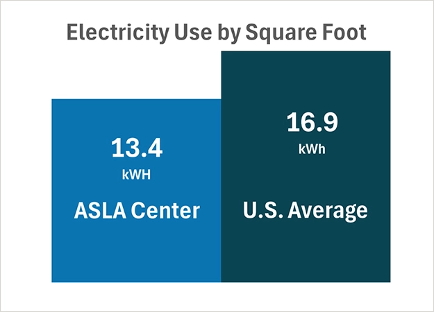 - energy used and waste generated from the ASLA Center for Landscape Architecture, the organization’s LEED Platinum- and Well Gold-certified headquarters,