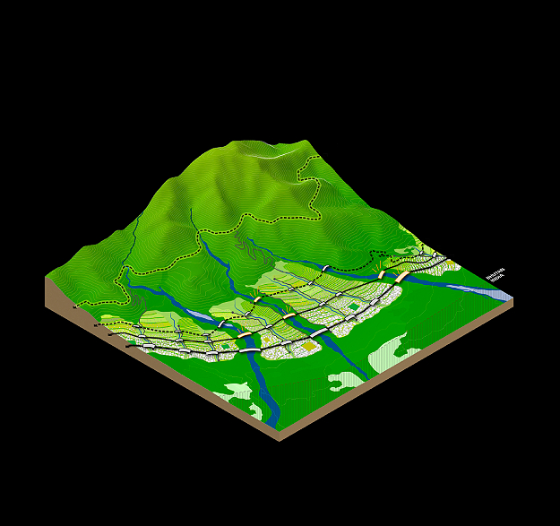 The upper part of the new city will be mostly rice paddies and agricultural fields. Much of the urban density will be found in the southern portion of the new city, closer to India.