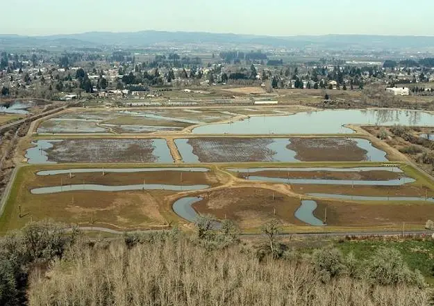 At the Forest Grove wastewater treatment plant in Forest Grove, Oregon, the utility Clean Water Systems came to Biohabitats to improve the function of a sewage lagoon. Water discharged into the lagoon was too warm and had too much nitrogen.