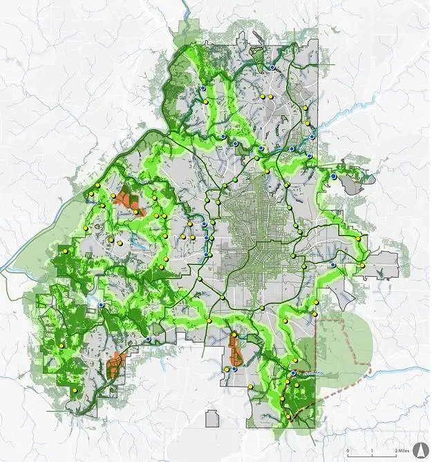 Atlanta has one of the largest urban tree canopies in the U.S. and a number of existing patches and corridors. But the city is also losing interior forest, which is 300 feet from any edge. "The city needs that core forest" because many species rely on it.