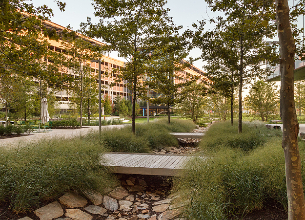 ASLA 2022 Professional General Design Honor Award. From Brownfield to Green Anchor in the Assembly Square District. Somerville, Massachusetts. OJB Landscape Architecture / Kyle Caldwell