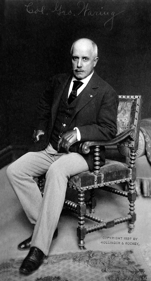Waring wrote numerous books, created the drainage plan for Central Park, and later became an influential sanitation commissioner of New York City. Born in Pound Ridge, New York, in 1833, he studied agricultural chemistry. In his early 20s, he wrote a book on scientific farming that explored "atmospheric and molecular matter, the interchange of Earth and air," Seavitt Nordenson explained. He called for "mechanical cultivation to reduce water in soil" through the use of "thorough under draining, deep disturbance of the soil, and trenches."