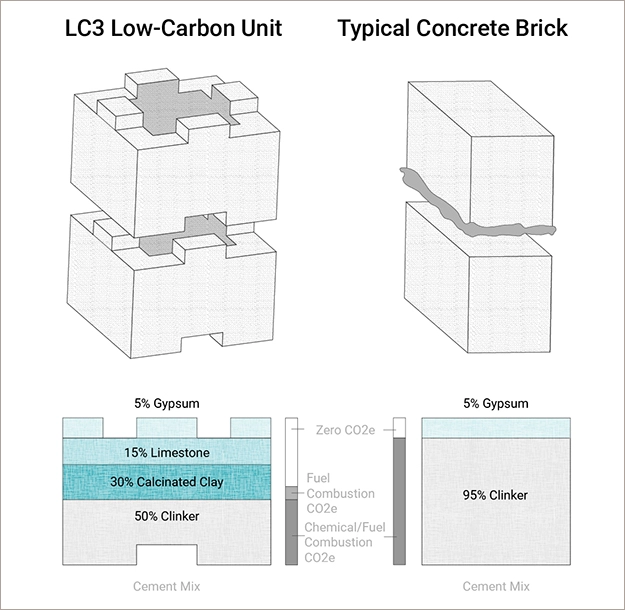 Step one is to minimize use. Step two is to design for efficiency with strategies like hollow LC3 blocks or fossil-free steel to move closer to zero emissions.