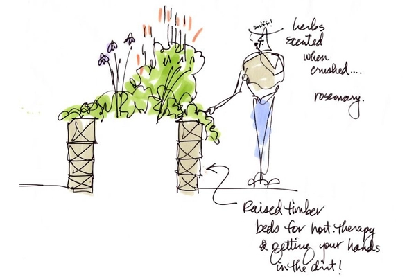 What kind of design elements do you usually use in your healing gardens?