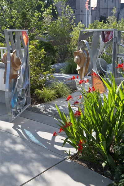 I think every garden has all the elements in it. There is no recipe to follow to create a healing garden. You have to work with what you have. You might have a water feature, landform, etc.—those elements are in the toolbox when you arrive at the project. Those may change. For example, at one of the healing garden projects, the Schneider Healing Garden, the client had an excellent affinity for art. So, we used the four elements: air, earth, water, fire. We manifested those elements in an artful manner. We incorporated work from five different artists.