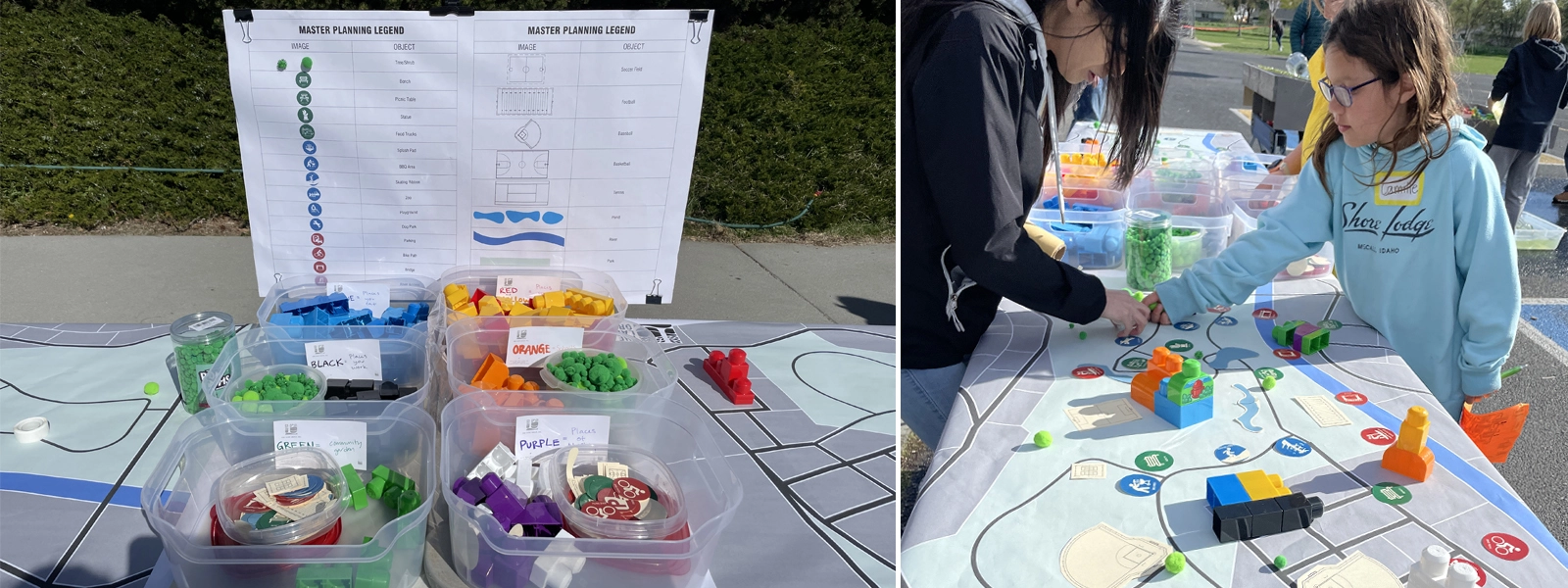 Master Plan Activity: In this planning exercise, students design their own master plan for a local area using a large map and Lego-style blocks representing buildings, infrastructure, trees, and other landscape elements to explore how communities are organized and developed.