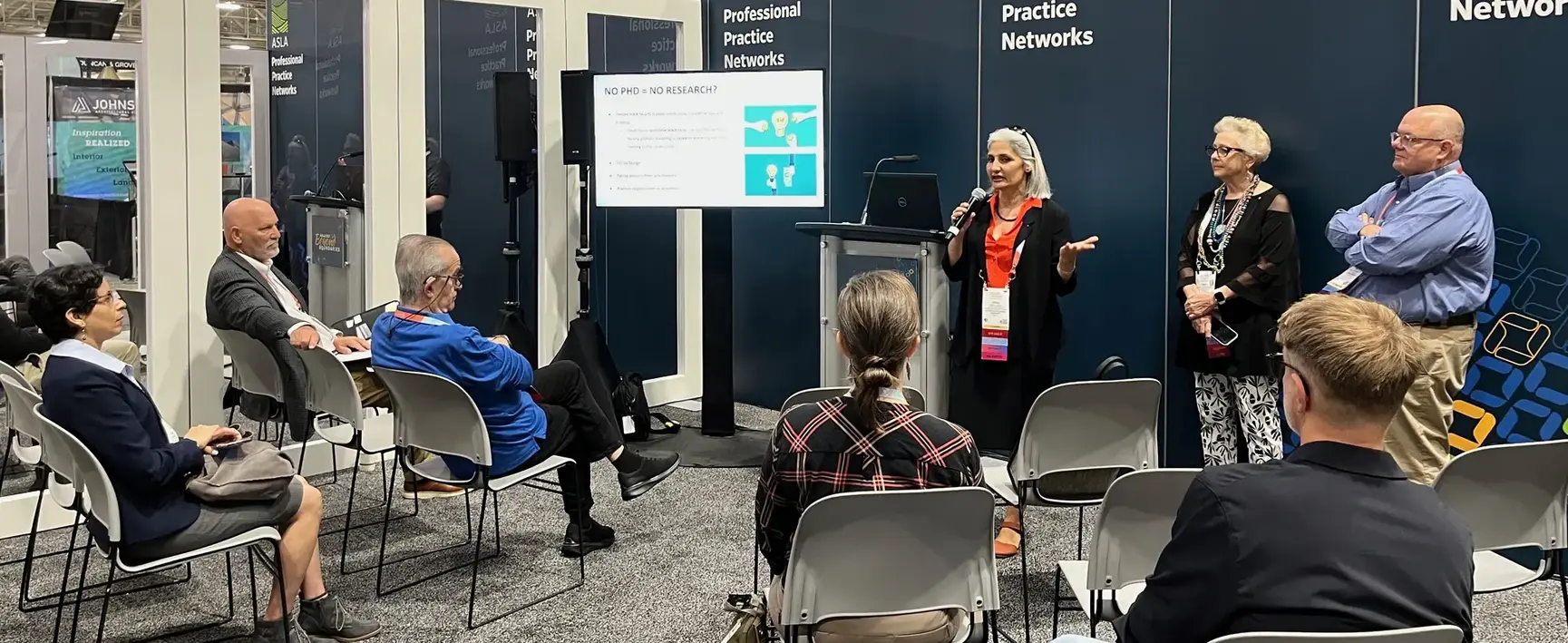 Panelists Ebru Özer, Ph.D., FASLA, CELA, Emily M. O’Mahoney, FASLA, PLA, LEED AP, and Paul D. Kissinger, FASLA, PLA at the Education & Practice Meeting during the ASLA 2025 Conference on Landscape Architecture